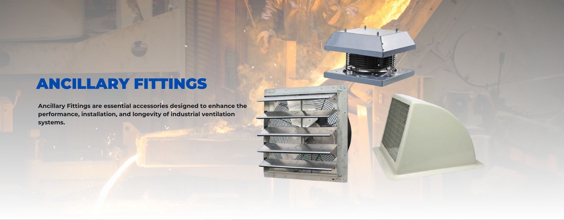 Ancillary Fittings are essential accessories designed to enhance the performance, installation, and longevity of industrial ventilation systems. These include dampers, silencers, vibration isolators, mounting frames, and flexible connectors, all engineered to improve airflow control, reduce noise and vibration, and ensure secure, efficient fan operation across a wide range of industrial applications.